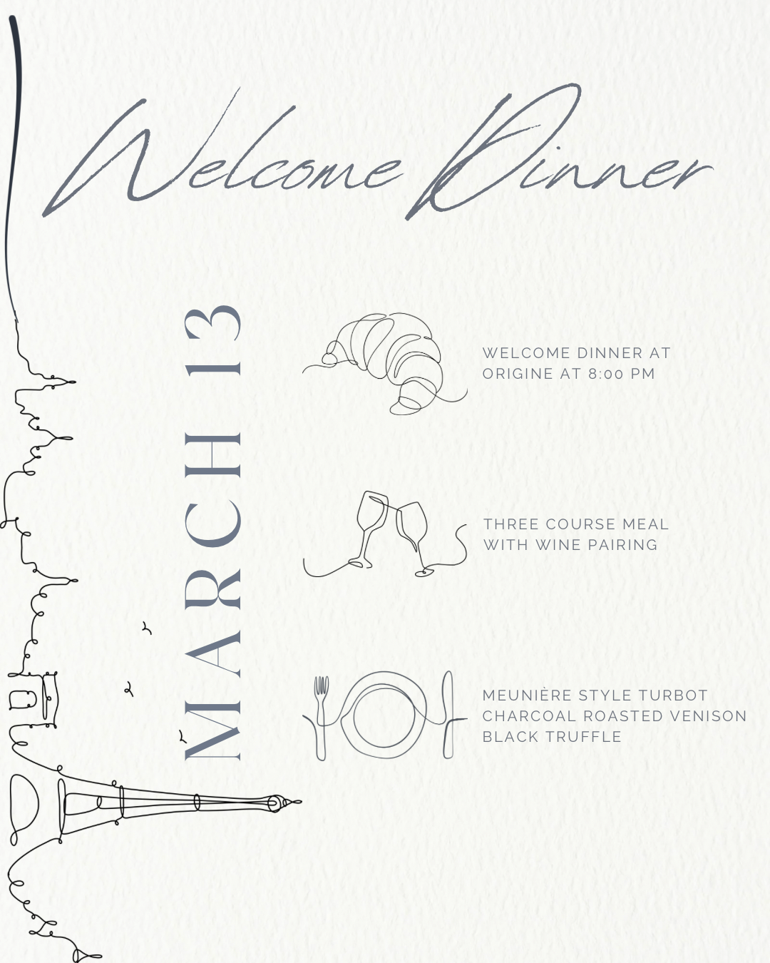 This bundle includes three templates in the Azure No. 1 palette - Welcome Dinner, The Details, and a Save The Date invite, with the option to amend text.